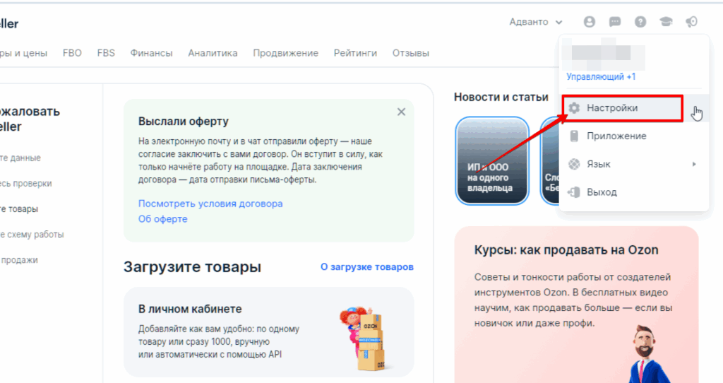 Перейдите в личный кабинет Ozon Seller