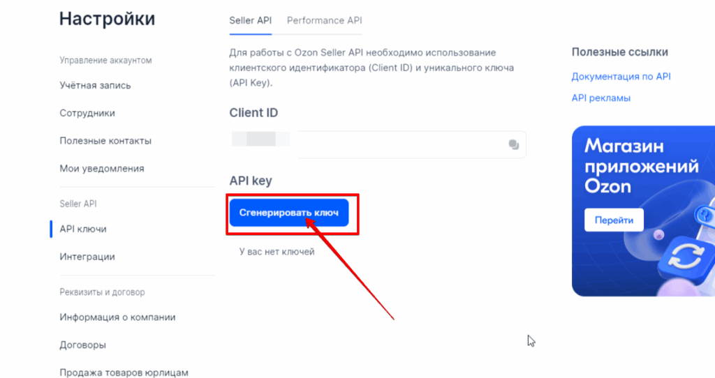 Перейдите на вкладку Seller API “API ключи”